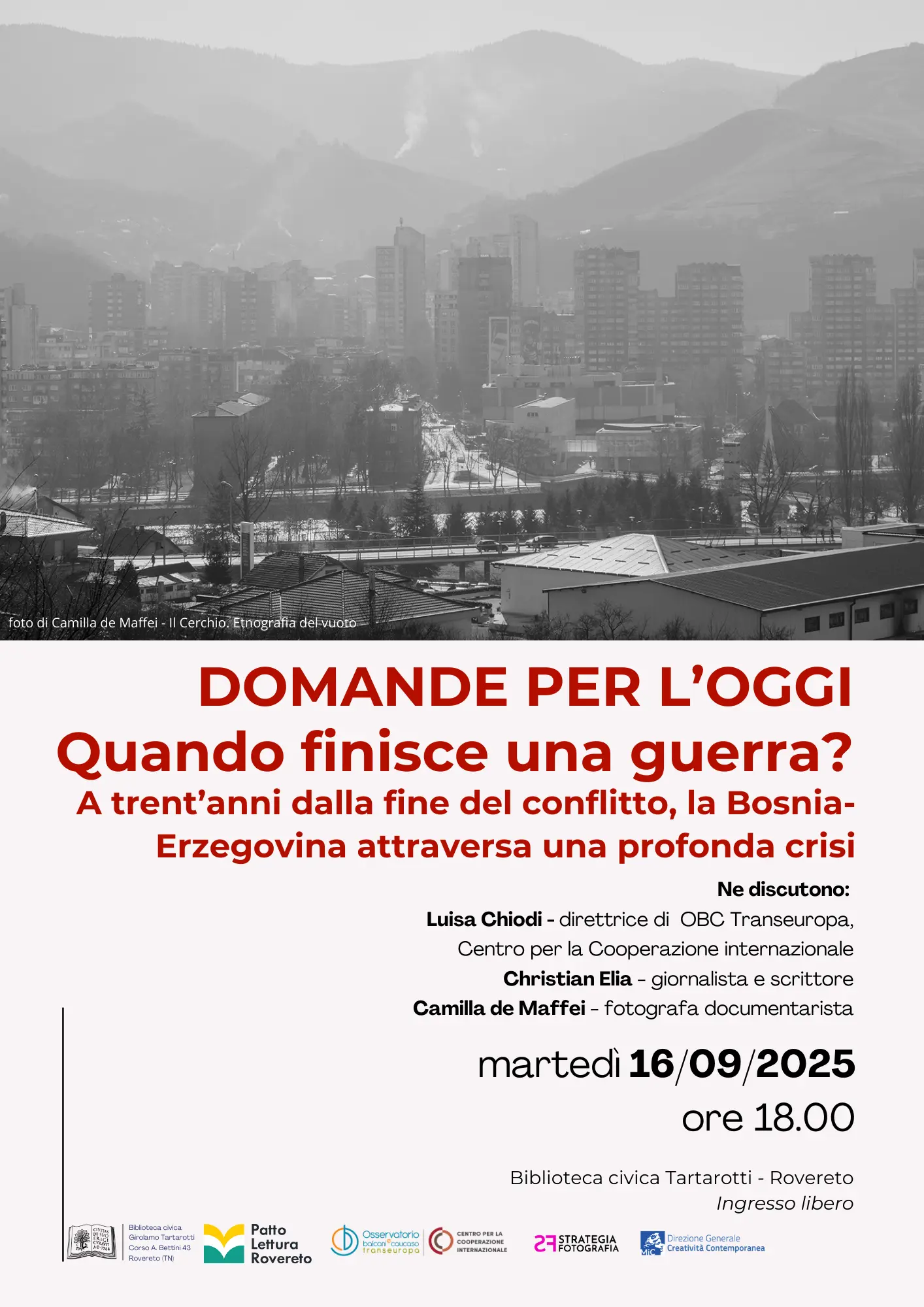 A trent’anni da allora, una riflessione sulla Bosnia Erzegovina di oggi e sulle molte dinamiche generate dalla guerra e lasciate irrisolte da quella pace, come l’emigrazione dei cittadini verso l’UE, l’arrivo di migranti che non si stabiliscono nel Paese, il lungo percorso di adesione all’Europa e le continue tensioni politiche.