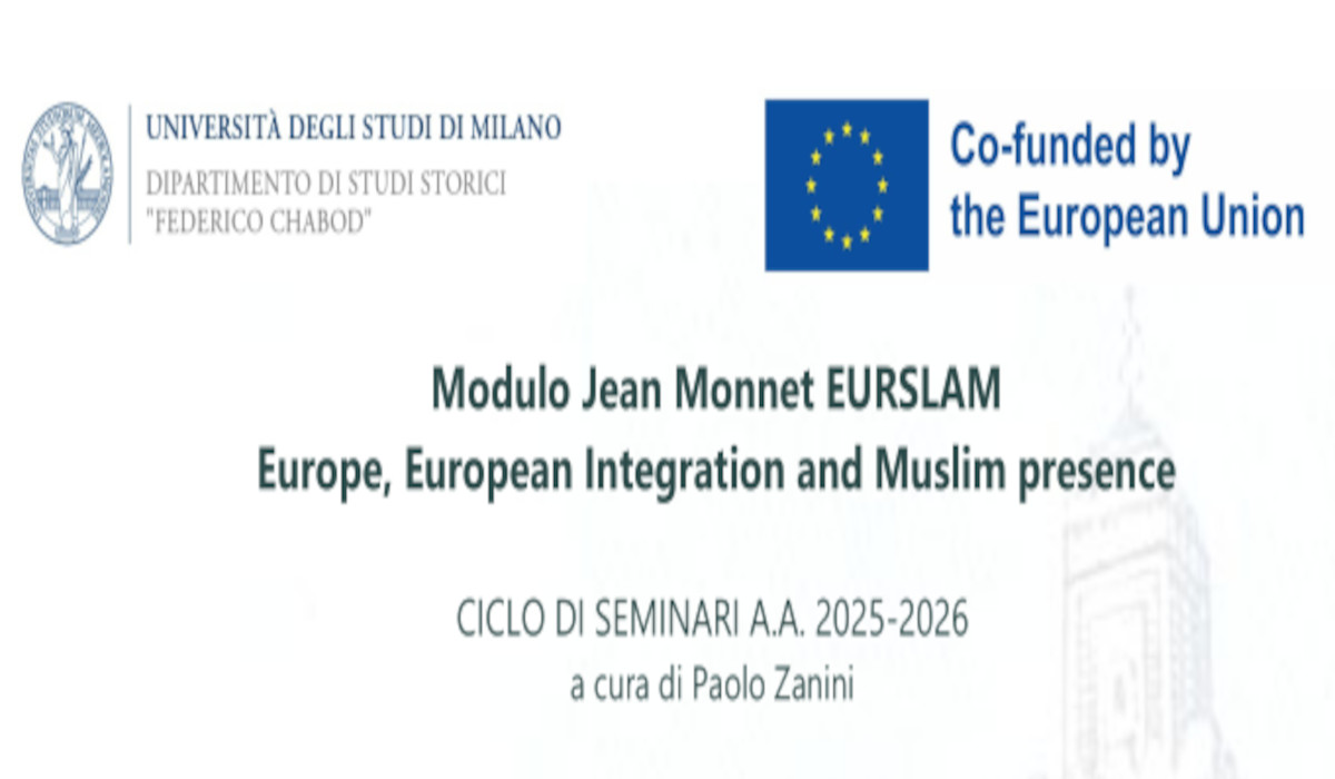 Nell’ambito del Modulo Jean Monnet EURSLAM, un ciclo di seminari organizzati dall’Università degli Studi di Milano aperti al pubblico, che si svolgono in cinque date tra il 16 aprile e il 4 maggio 2026
