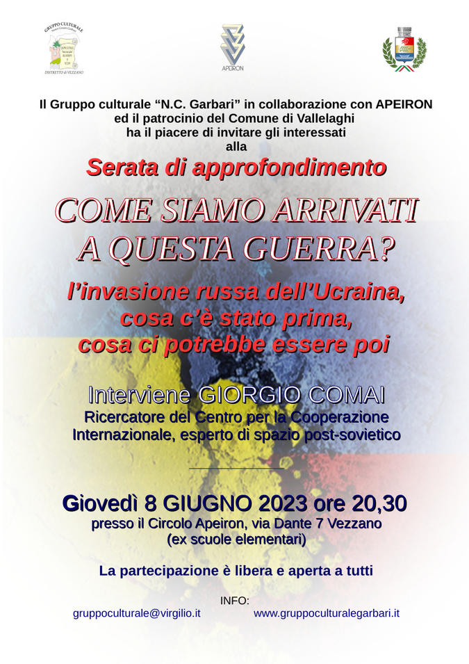 Serata di approfondimento con Giorgio Comai, ricercatore di OBC Transeuropa/Centro per la Cooperazione Internazionale, esperto di spazio post-sovietico, che non andrà nei dettagli delle dinamiche della guerra combattuta, ma condividerà con noi riflessioni più ampie, che aiuteranno a capire cosa c’è stato prima dell’invasione russa dell’Ucraina e che cosa ci potrebbe essere poi.