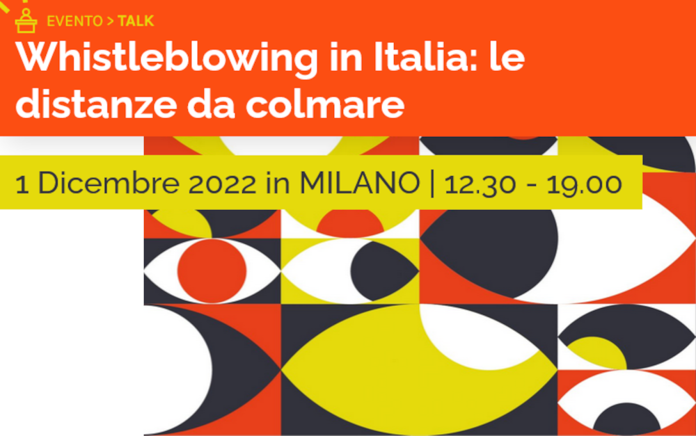 - “Perché segnalare? I fattori psicosociali connessi al whistleblowing”, con Sergio Arcuri (whistleblower Arval) e Giorgio Fraschini (Transparency IT). Modera Stefania Zolotti (SenzaFiltro).