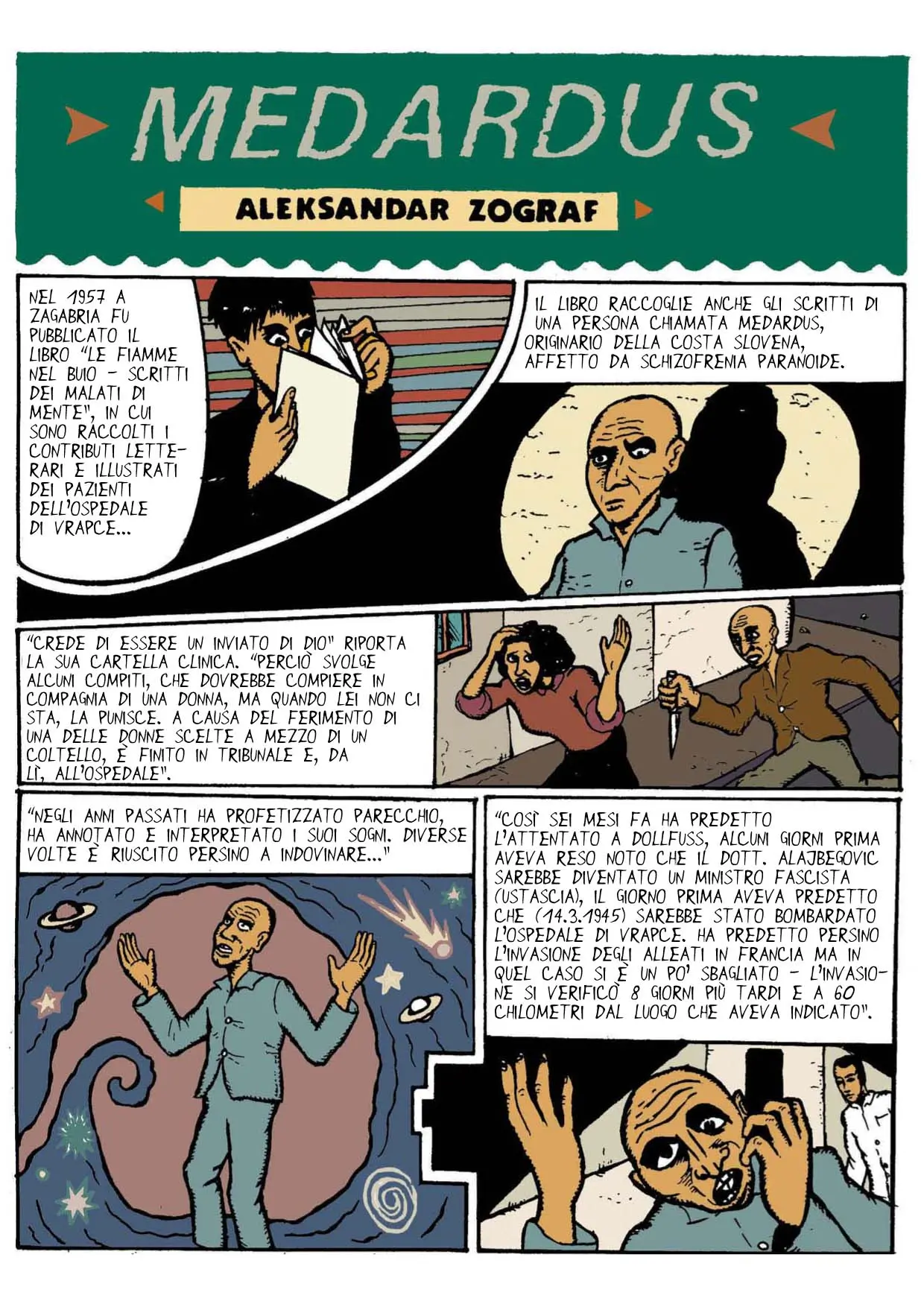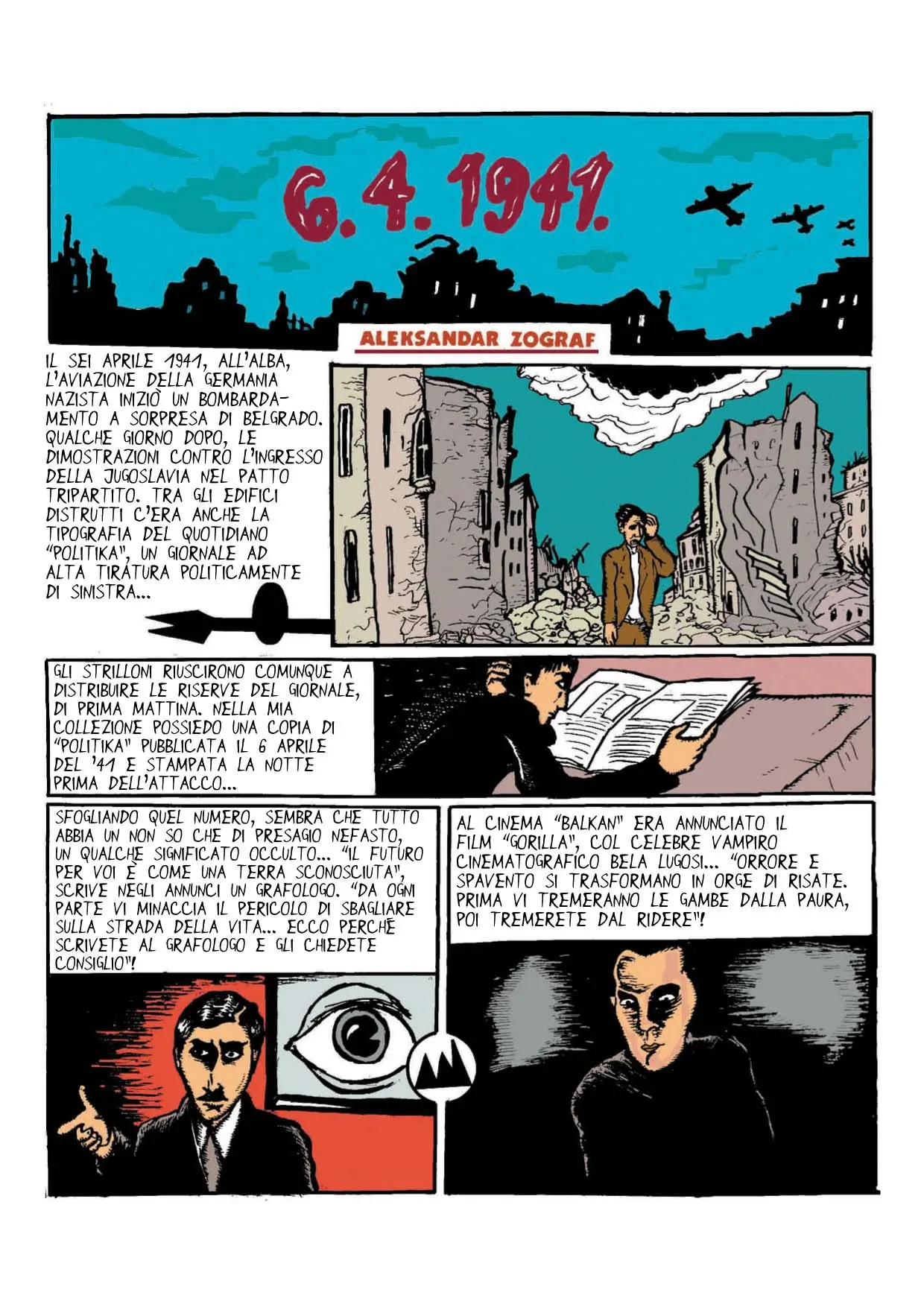 Aleksandar Zograf, pseudonimo di Saša Rakezić, è nato nel 1963 a Pančevo (Vojvodina, Serbia). Giornalista musicale e disegnatore di fumetti, è autore di numerosi lavori pubblicati in tutto il mondo. Tra questi: Life Under Sanctions, Psychonaut, Dream Watcher e Bulletins from Serbia. In Italia si afferma con Lettere dalla Serbia, cronaca quotidiana dei bombardamenti della NATO (PuntoZero, 1999), Psiconauta (1999) e Saluti dalla Serbia (2001). Per la casa editrice Black Velvet pubblica successivamente (C’è) Vita nei Balcani?, seguito di Saluti dalla Serbia e i volumi Appunti – Un anno con Aleksandar Zograf (volumi 1 e 2), Abramacabra (su testi di Francesca Faruolo ed Emanuele del Medico).